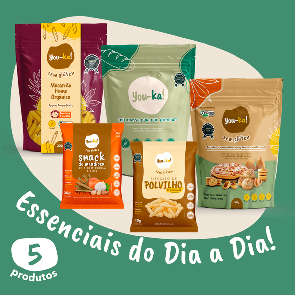 O Kit "Essenciais do Dia a Dia" traz praticidade, sabor e versatilidade para sua rotina sem glúten. Ideal para quem gosta de ter tudo à mão para refeições rápidas e nutritivas!