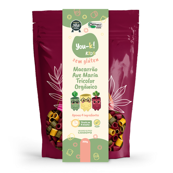 O Macarrão Ave Maria Tricolor You-k! Kids chegou para deixar as refeições das crianças mais divertidas, nutritivas e saborosas!