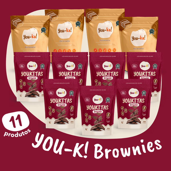 O Combo You-k! Brownies une o melhor dos dois mundos: o irresistível mix para Brownie You-k! e o crocante Youkitas sabor Brownie, perfeitos para quem ama chocolate, mas não abre mão de uma alimentação leve e saudável.